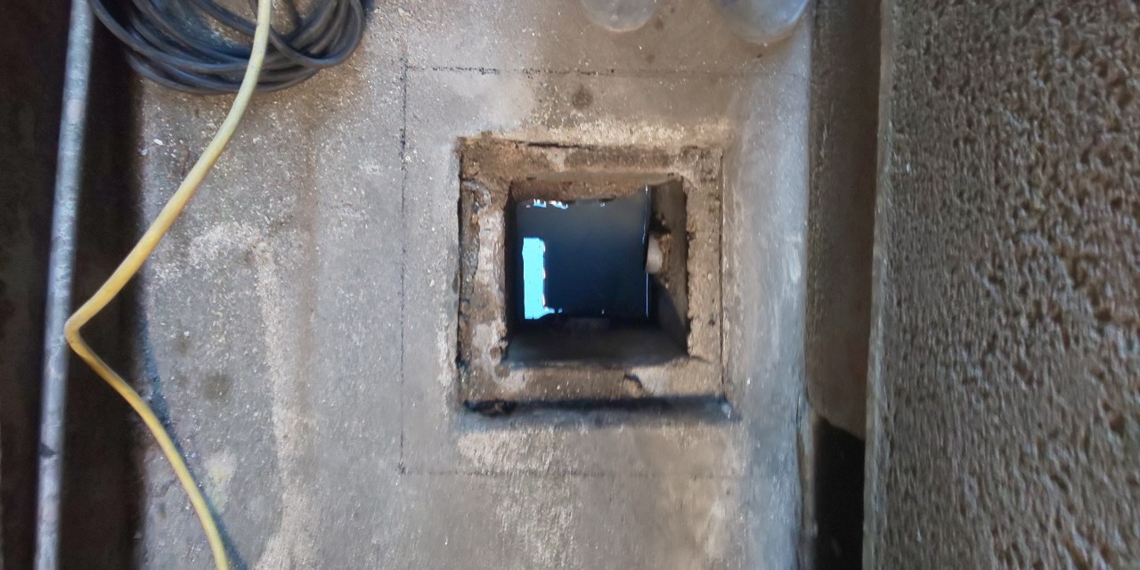 古いマスで、すでに漏れてマスの下がヘドロになっていました。
