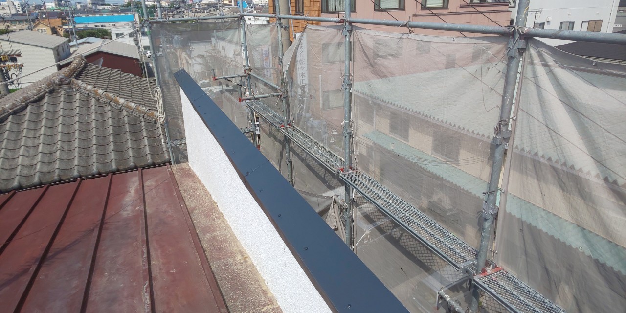 下の写真は「がんぶり」と呼ばれる部分を笠木板金で葺き替えました。