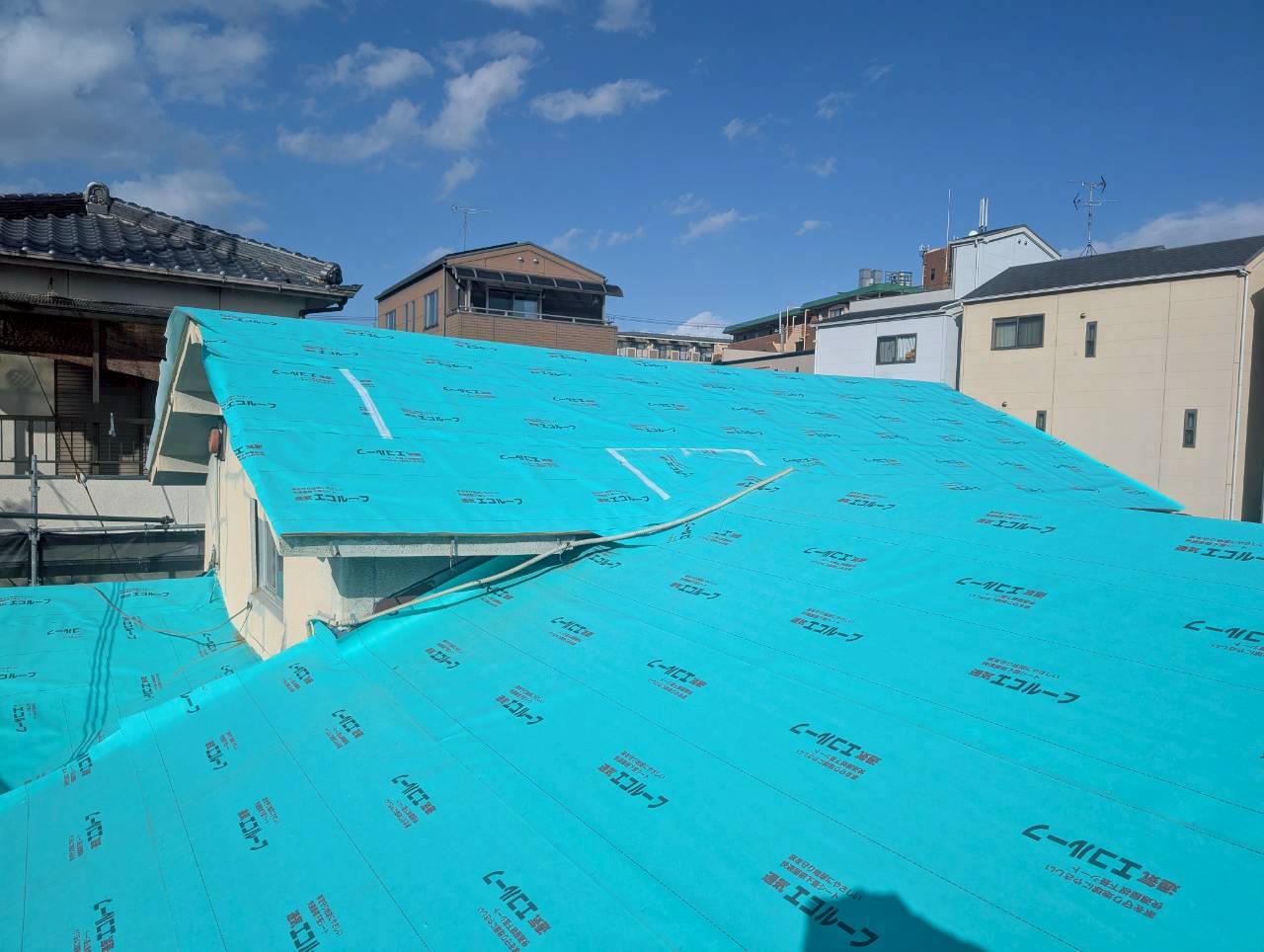 現在は、下地処理とルーフィング(防水シート)をしています。